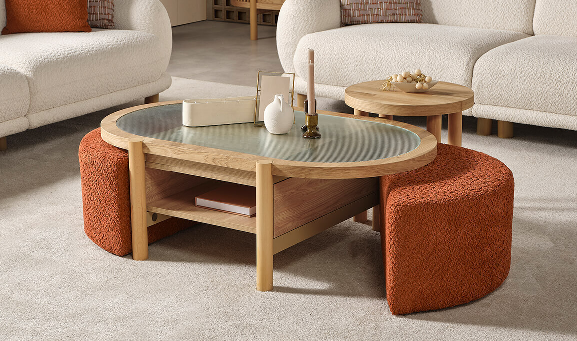 Orta Sehpa Seti (Orta Sehpa + 2 Adet Puf)