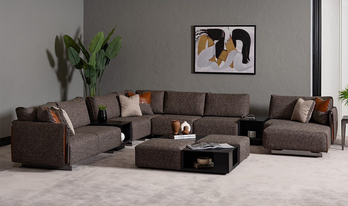 1 Adet Sol Kollu İkili Modül / 1 Adet Ara Sehpa / 1 Adet Köşe Modül / 2 Adet Tekli Kolsuz Modül / 1 Adet Şarjlı Sehpa Modül / 1 Adet Sağ Kollu Dinlenme Modül